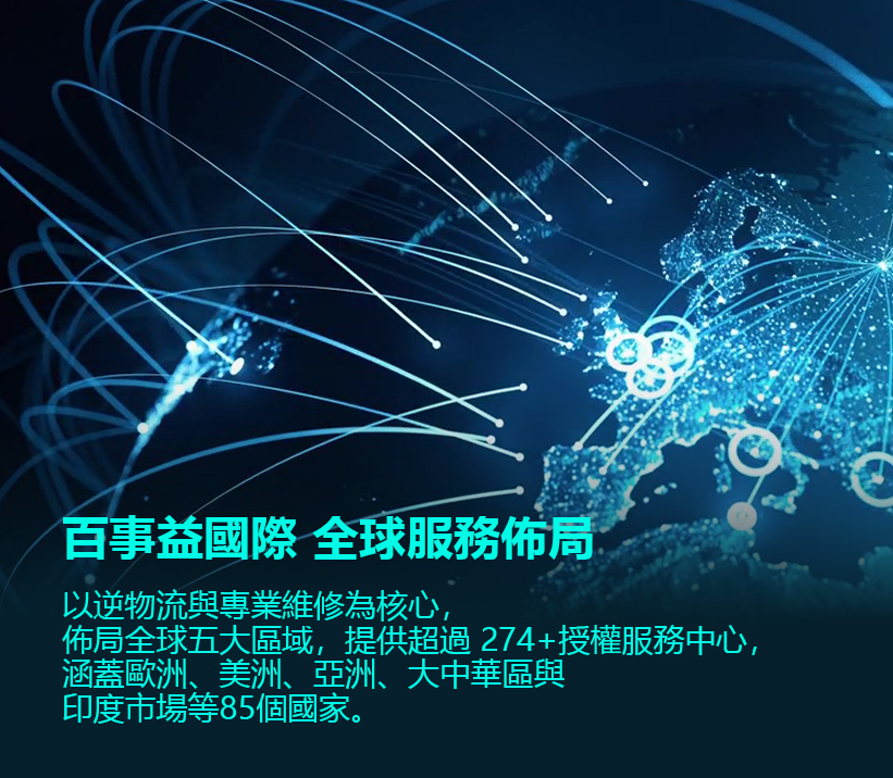 北美是全球科技品牌總部集中地,百事益國際於美國與加拿大建立多個企業支援中心,涵蓋保內外維修、現場服務與備料運籌,協助客戶整合售後流程並優化客戶體驗,創造即時且具競爭力的服務價值。