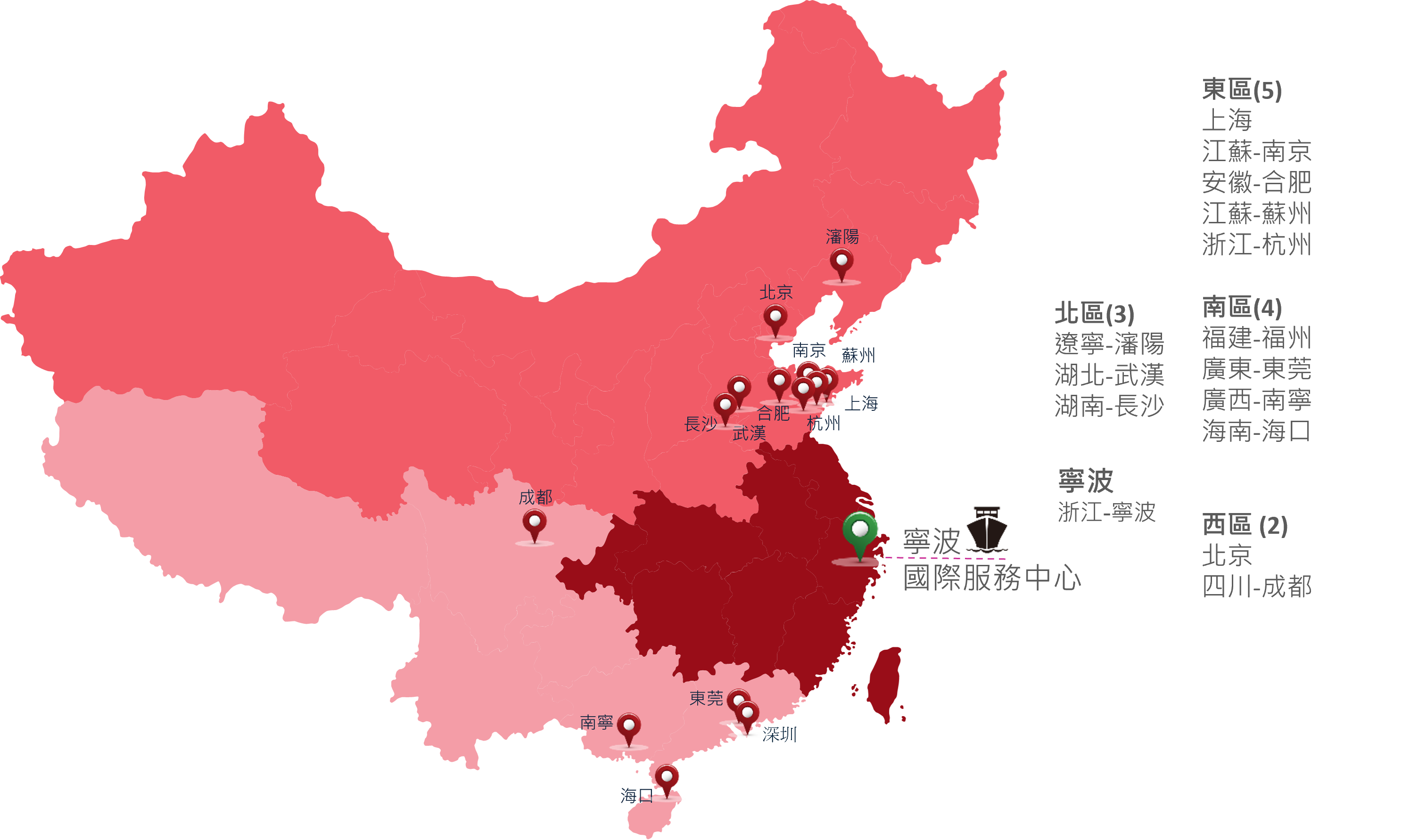 百事益國際於中國市場深耕多年,服務網絡橫跨東南沿海至內陸核心城市,涵蓋製造基地、品牌中心與消費者重鎮。中國據點具備完備的保固內外維修能力,並結合在地化資源整合、零件倉儲佈局與標準化流程建制,能快速支援大量維修件流與多品牌高階設備的專業維護。